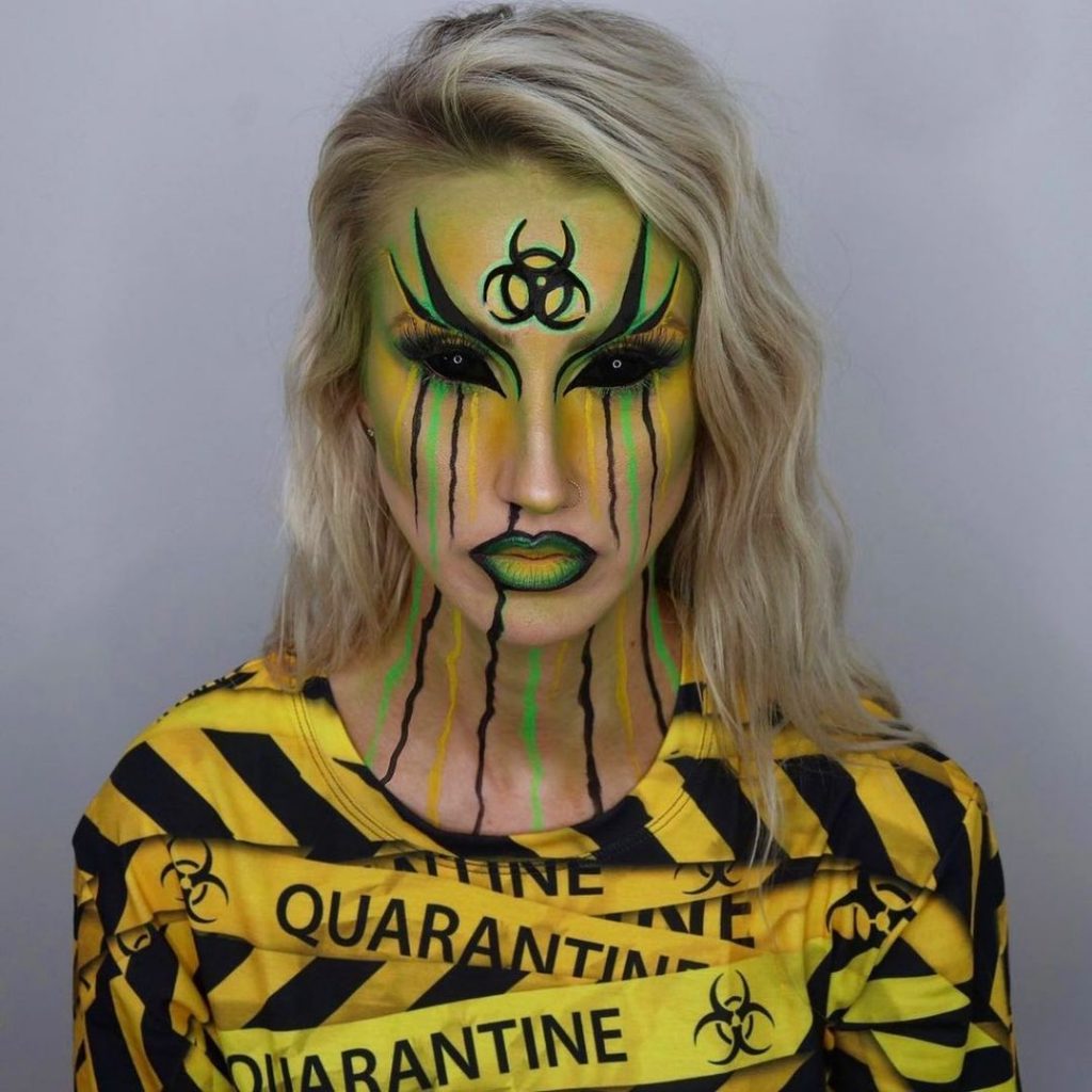This biohazard babe sets the bar high with an incredible quarantine look that is equal parts relevant and terrifying. This is a look we haven’t seen much of in Halloween’s past, but it’s bound to be a popular one this Spook-tober.